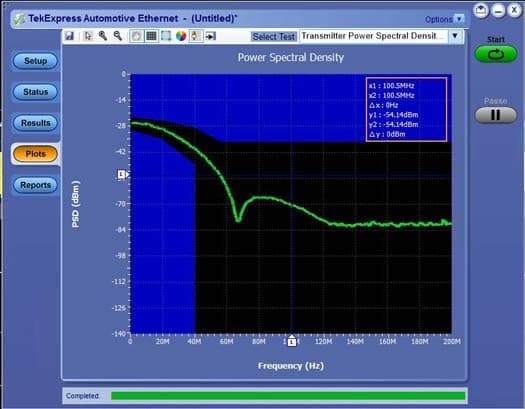 Test automatizzati come quello della Densità Spettrale di Potenza (Power Spectral Density), confermano la conformità allo standard comparando i risultati ai limiti del test