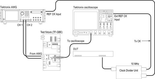 Esempio del banco per il test per la misura della distorsione nel trasmettitore Ethernet in presenza di un segnale di disturbo
