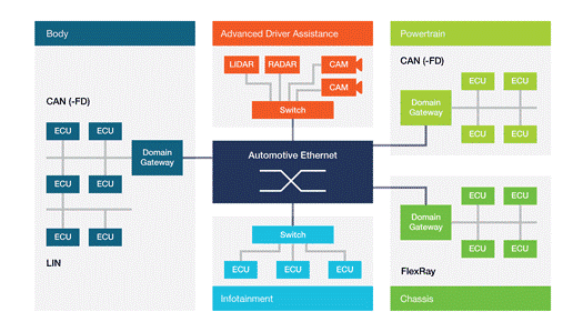 Gli ADAS (Advanced Driver Assistance System), i nuovi sistemi di sicurezza smart ed i sottosistemi di interazione uomo-macchina generano una vasta mole di dati da trasportare attraverso un veicolo. Inoltre, le richieste di integrazione tra i vari sottosistemi necessitano di cambi architetturali fondamentali: da una semplice rete ad anello a topologie più complesse, che includono dei gateway connessi al backbone.