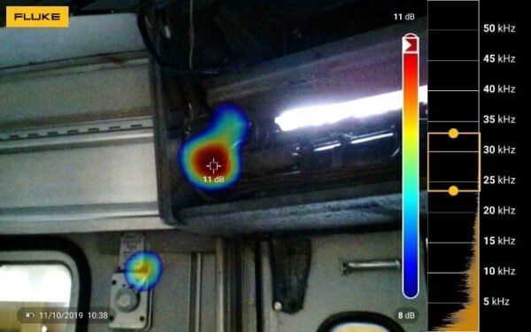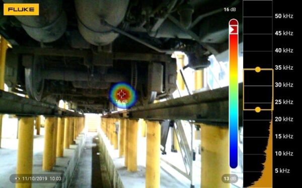 La nuova telecamera acustica Fluke ii905 ti permette di trovare ogni perdita di aria compressa in pochissimo tempo e senza nessuno sforzo. Basta puntare la telecamera sotto la carrozza e passeggiare puntandola in alto per scovare ogni punto di perdita di aria compressa. Selezionando la banda di ultrasuoni opportuna è possibile lavorare in ambiente rumoroso, mentre si eseguono altre lavorazioni o controlli.
