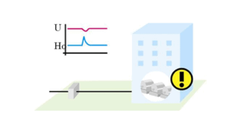 Se la tensione scende durante l’aumento del consumo corrente in un edificio, la causa è considerata proveniente dall’interno dell’edificio. D’altra parte, se sia la tensione che la corrente diminuiscono contemporaneamente, la causa è attribuibile ad attrezzature esterne o all’anomalia al di fuori dell’edificio. È importante determinare dove misurare e misurare anche la corrente.