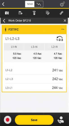 I nuovi multimetri a pinza AC/DC Fluke 377 e 378 FC a vero valore RMS per misure di tensione senza contatto con iFlex sono abilitati per Fluke Connect™ e consentono quindi agli utenti di registrare, analizzare e condividere i risultati con gli altri membri del team. Ecco cosa puoi fare con Fluke Connect: