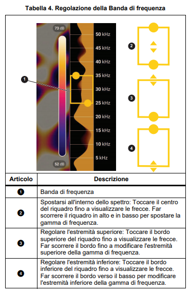 Utilizzo della finestra di selezione della banda di frequenze da misurare.