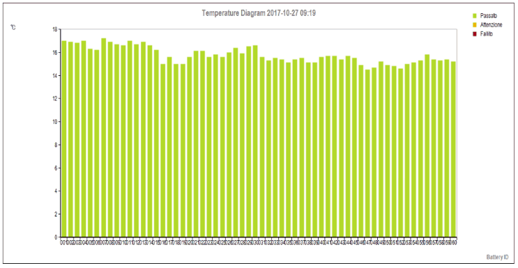 Alla fine della sessione di misura le batterie non funzionanti o necessarie di manutenzione saranno facilmente evidenziate sullo strumento.