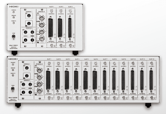 insieme al tester d’impedenza BT4560, uno switch Mainframe (SW 100x) corredato delle opportune schede di input (SW 900x) in base al metodo di misura (2-wire, 4-wire, 4 terminal pair) ed al numero di canali necessari. Si può arrivare a gestire fino a 264 canali (collegamento 2-wire), 132 canali (4-wire) e 72 (4 terminal pair).