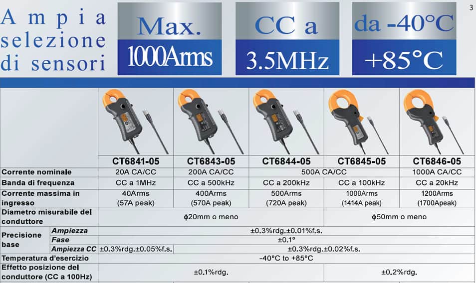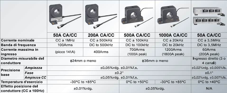È possibile collegare direttamente un’ampia gamma di sensori di corrente ad alta accuratezza dove è possibile compensare l’errore di fase in un ampio range di frequenze per garantire misure molto più accurate ad elevate frequenze e basso power factor.