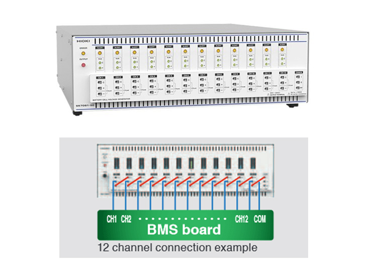 Una tecnica per valutare e testare un BMS consiste nell’utilizzare della strumentazione che consenta di emulare il funzionamento di una batteria. Ad esempio, con un Battery Cell Voltage Generator si può ottenere una valutazione facile ed accurata dei BMS, pensato per simulare pacchi batteria agli ioni di Litio (utilizzati nei veicoli elettrici) e batterie di accumulo. Lo strumento può quindi essere utilizzato come simulatore di batteria per le seguenti applicazioni: