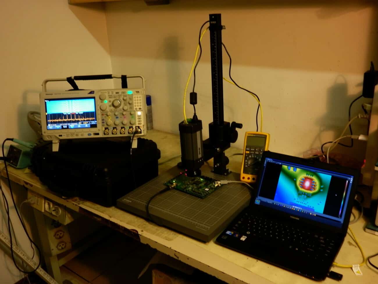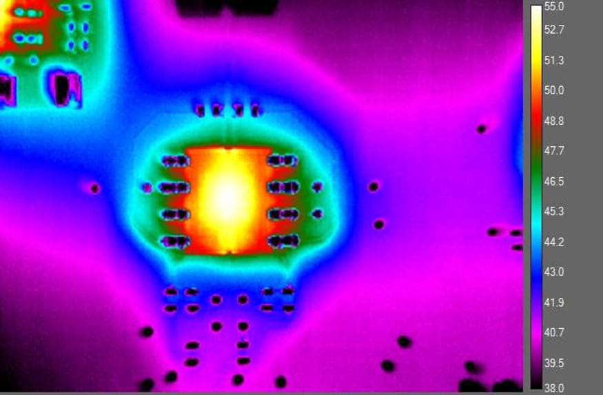 Figura 2 Microelettronica – E’ visibile il componente più caldo della scheda in esame (5 mm) – Termocamera fissa da laboratorio e lente close-up (100µm)