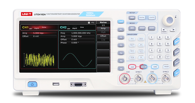 I generatori di forme d’onda della serie UTG4000A si applicano a un’ampia gamma di applicazioni, integrando forme d’onda multiple per la generazione di funzioni, la generazione di forme d’onda arbitrarie, la generazione di impulsi, la generazione di armoniche e la sorgente di modulazione analogica/digitale. La serie UTG4000A è un generatore di forme d’onda con un’elevata frequenza di campionamento fino a 500 MSa/s, lunghezza d’onda MAX fino a 32 Mpt.