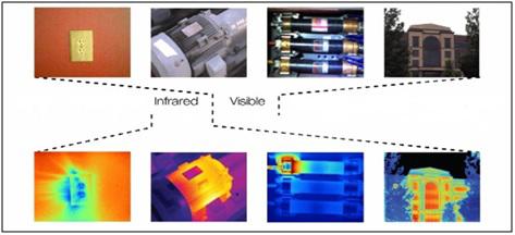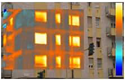 Le radiazioni nel campo dell’infrarosso termico sono rilevate dalla termocamera e tradotte in una immagine termica cromatica, dove i diversi colori indicano le temperature superficiali degli oggetti. La termocamera permette quindi di effettuare misure di temperatura precise e correlate con l’emissione di tali radiazioni (Fig.2).
